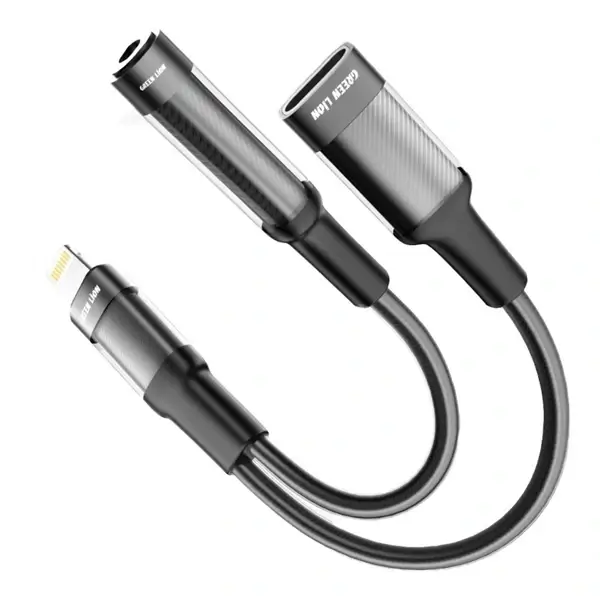 L’adaptateur de charge et écouteurs 2 en 1 Green Lion (12 cm) est un accessoire de pointe qui change votre façon d’écouter de l’audio et de charger. Il intègre les fonctions Lightning vers Lightning (chargement) et Lightning vers 3,5 mm (audio). Il vous permet d’utiliser les deux en même temps. Que vous ayez besoin d’une charge rapide ou que vous souhaitiez vous immerger dans un son de haute qualité. L’adaptateur Green Lion présente une construction robuste. Il utilise un mélange de TPE et d’alliage d’aluminium. Ce mélange de matériaux donne un look élégant et moderne. Il garantit également que l’adaptateur peut gérer une utilisation quotidienne. Il sera fiable et durera longtemps.