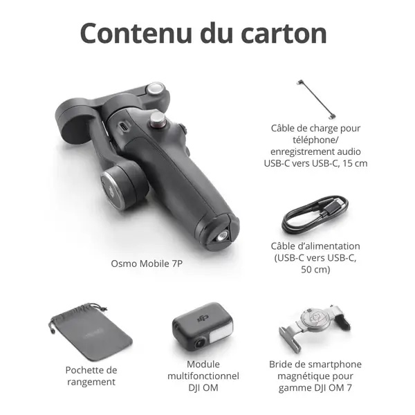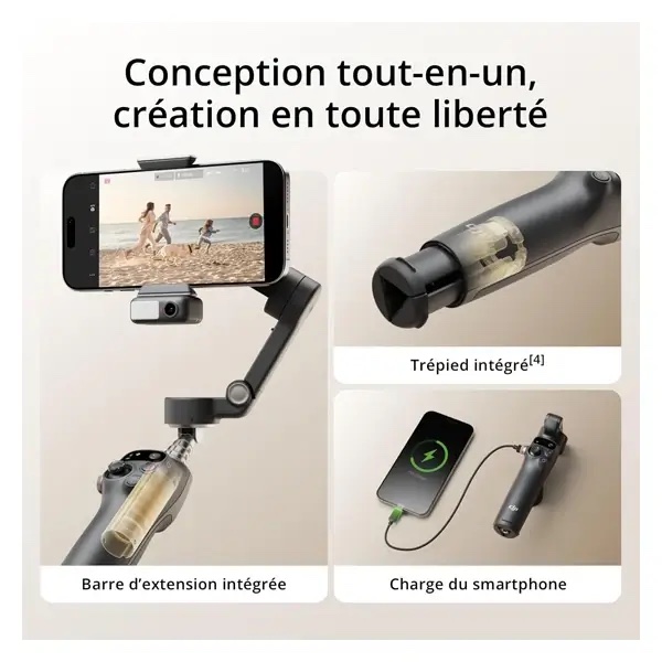 Comprend la stabilisation à trois axes de septième génération de DJI, pour des séquences fluides et sans tremblement avec divers téléphones intelligents (jusqu’à 0,3 kg/300 g)
