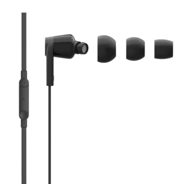 Ecouteur filaire Belkin avec connecteur Type-C – 1.2m – IPX5 – Embouts S,M,L – Fonction tactile pour appel et musique – Microphone intégré, Noir