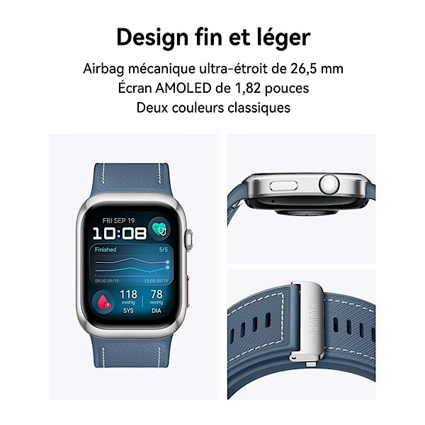 Corps monobloc innovant avec bracelet et airbag : Ce modèle 2 en 1 est équipé d’un airbag mécanique ultra fin de 26,5 mm qui s’adapte parfaitement et se gonfle facilement. Il évacue également la transpiration et apaise la peau, et peut être retiré et remplacé par une simple pression sur le bouton Quick Release.