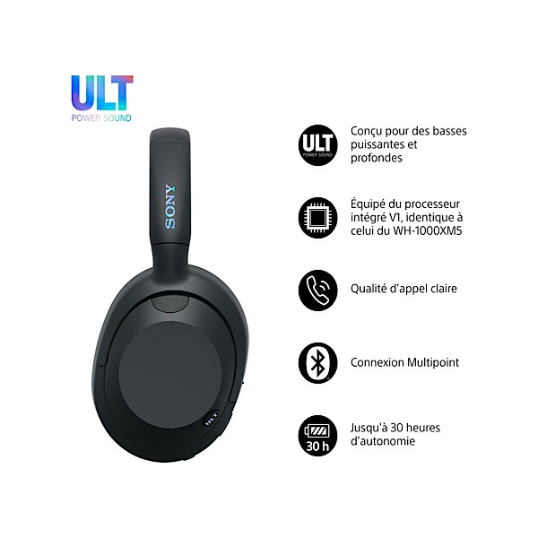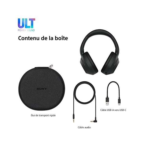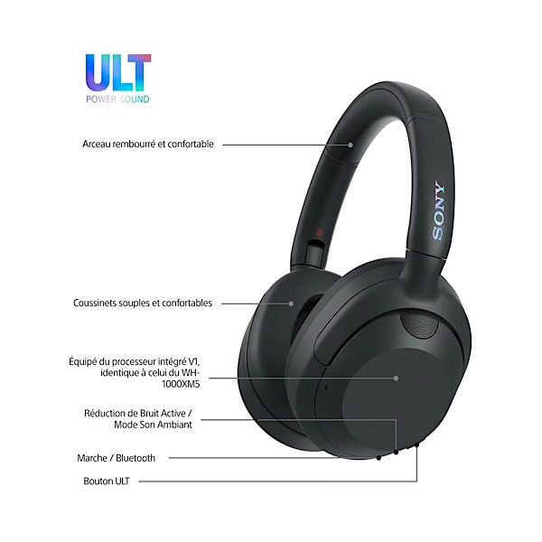 Le Sony ULT WEAR est un casque Bluetooth 5.2 qui vous offre des basses exceptionnelles et qui profite d’une réduction de bruit améliorée. Il vous permet d’emporter partout avec vous votre ambiance de festival ou de club préférée. Le codec LDAC embarqué permet de transmettre environ trois fois plus de données que l’audio Bluetooth conventionnel afin de conserver une excellente qualité de son. Il vous accompagne partout sans contraintes grâce à sa conception sans fil fiable, son autonomie record (jusqu’à 50 h), son étui et les assistants vocaux embarqués.