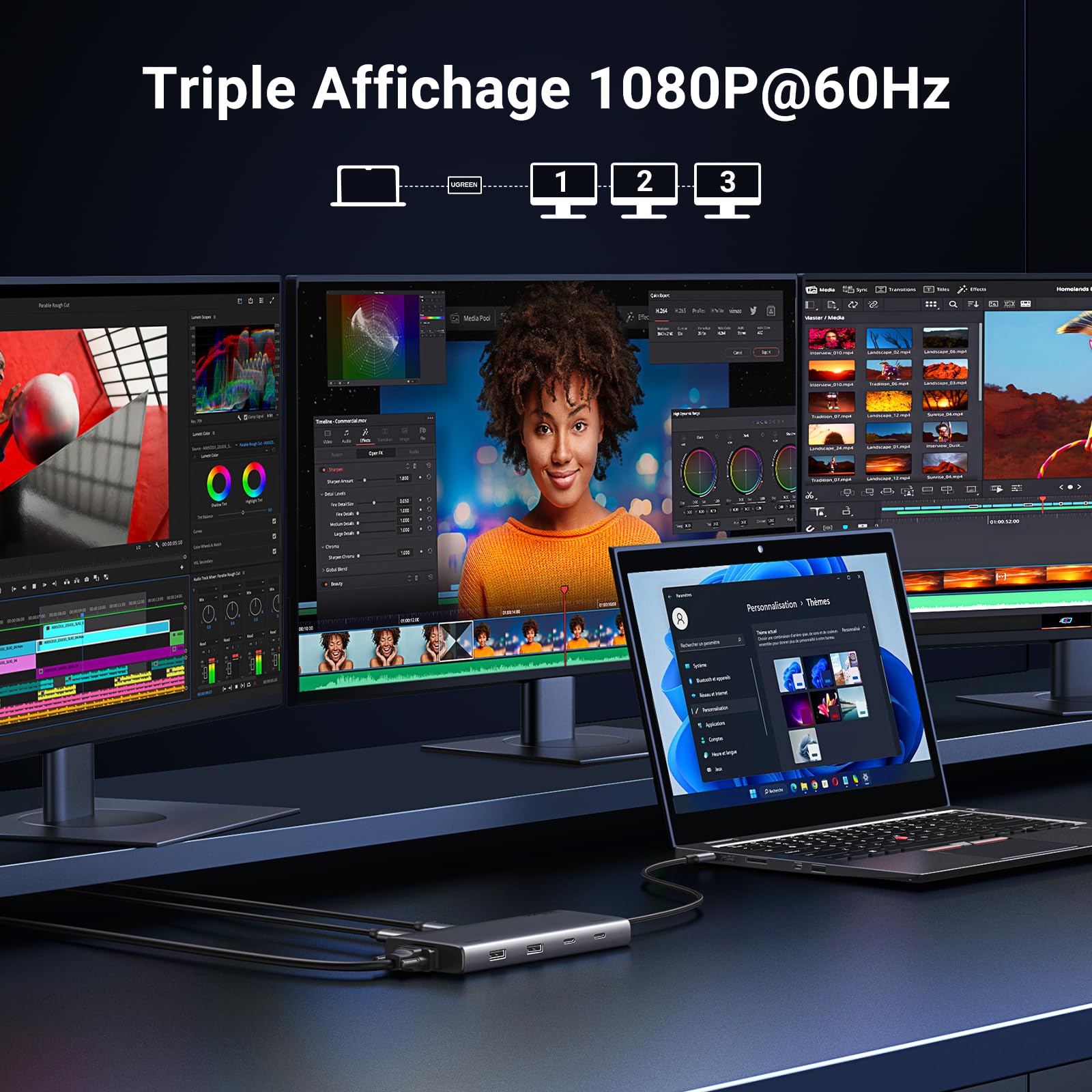 Accessoires, Autres accessoires, Autres composants, Chargeurs & Adaptateurs, Composants & Périphériques, InformatiqueStation d’accueil USB C 4K 8 en 1 UGREEN, double écran, triple écran, hub USB C avec 2 ports HDMI, VGA, 2 ports USB A&C 3.2, 100 W UGREEN CM639 35588